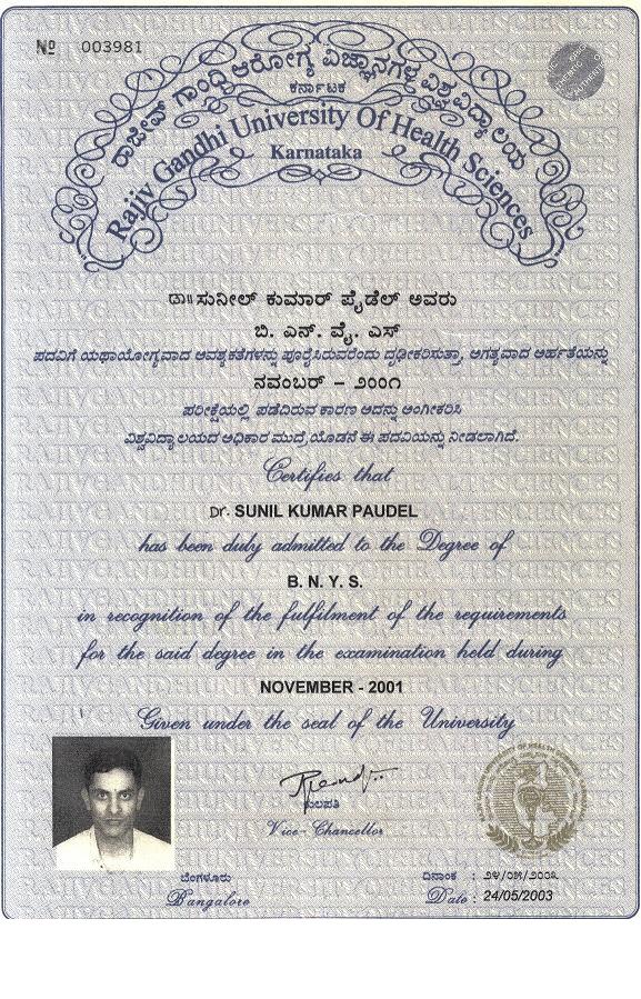 Dr. Sunil Paudel is the first Yoga and Naturopathy Medical Graduate (BNYS) of Himalayan Nation, Nepal. He is a dynamic and talented BNYS graduate of SDM College of Naturopathy and Yogic Sciences (affiliated to Rajiv Gandhi University of Health Sciences, Bangalore).